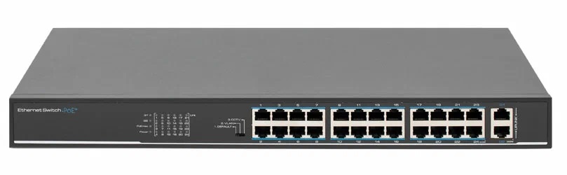 Неуправляемый, 24 порта 10/100 Мбит/с (все с поддержкой High PoE) + 2 порта 10/100/1000 Мбит/с, PoE бюджет 225 Вт, CCTV режим до 250м