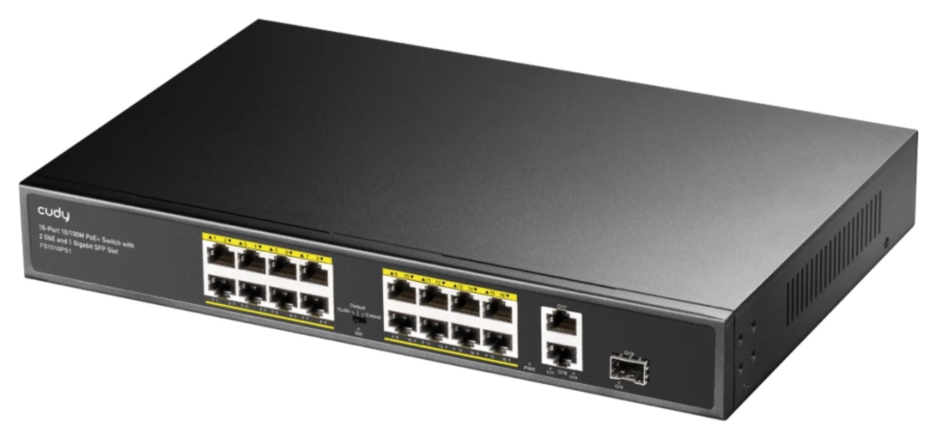 Коммутатор Cudy FS1018PS1, 16-Port 10/100M PSE RJ-45 +2 Gigabit RJ- 45 +1SFP Port with 16 POE Ports Switch with Built-in power supply, support 16-port
