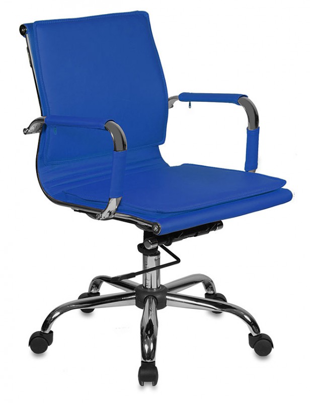 Кресло руководителя Бюрократ CH-993-Low/blue низкая спинка синий искусственная кожа крестовина хромированная