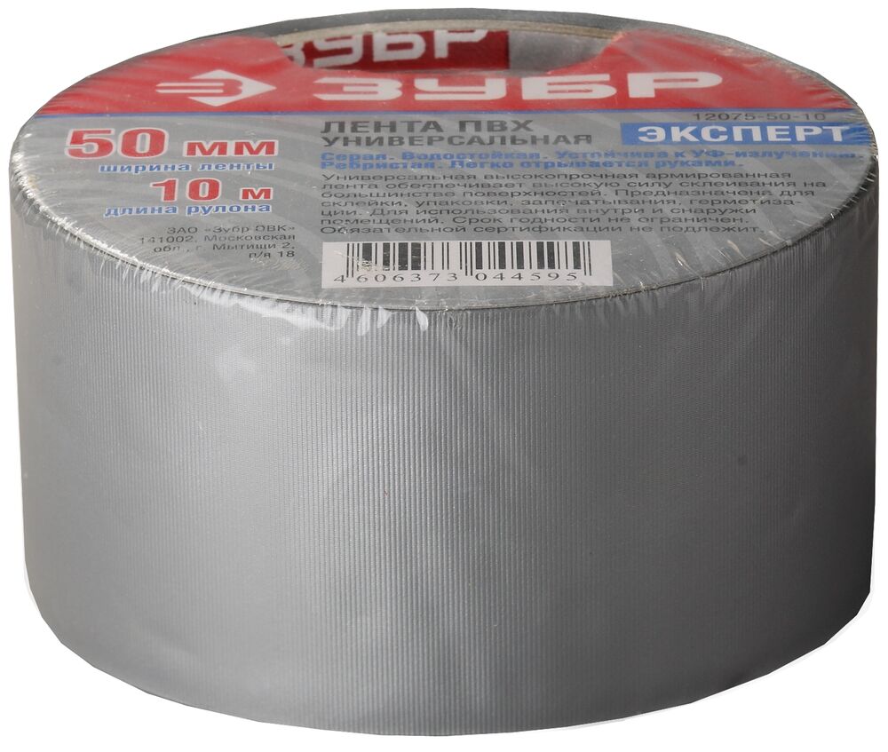 Лента ЗУБР "ЭКСПЕРТ" "РЕФИЛ", клейкая, рифленая, водоотталкивающая, устойчивая к УФ. 50 мм х 10 м, металлик, 12075-50-10