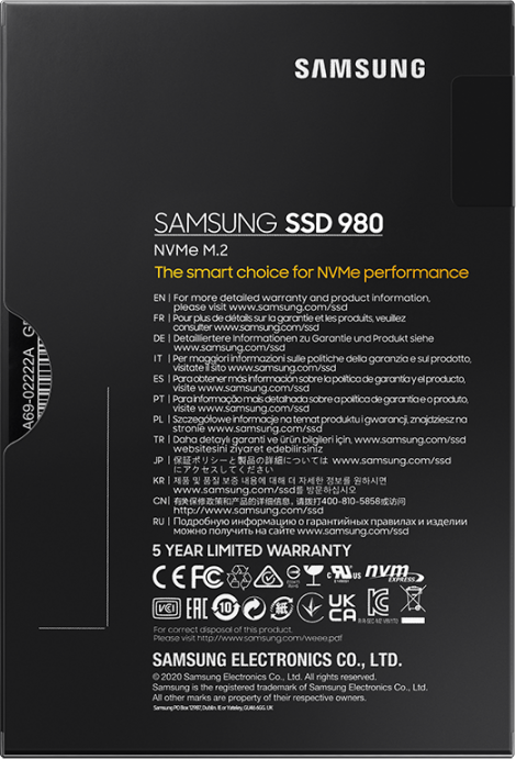 Накопитель SSD,500 GB,Samsung 980 M.2 , PCI-E NVMe, MZ-V8V500BW