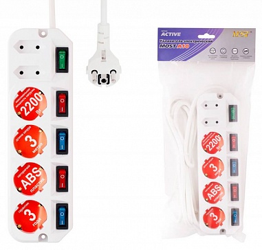 Сетевой удлинитель Most A10 1.6м (6 розеток) белый (пакет ПЭ)