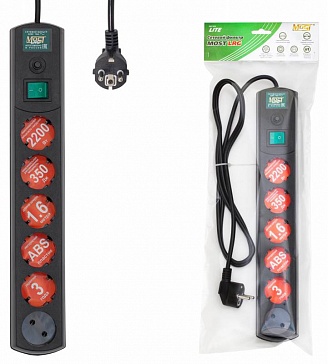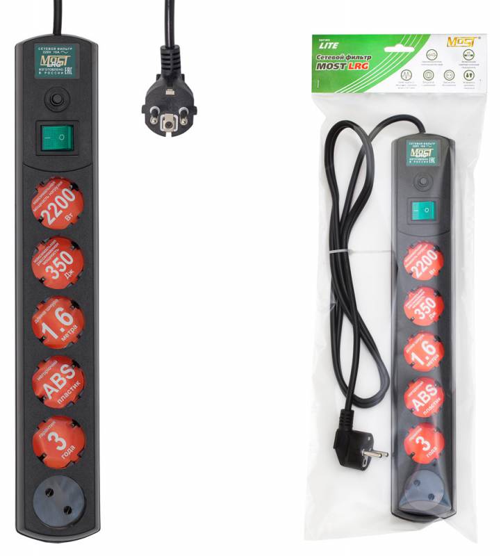 Сетевой фильтр Most LRG 3м (6 розеток) черный (пакет ПЭ)