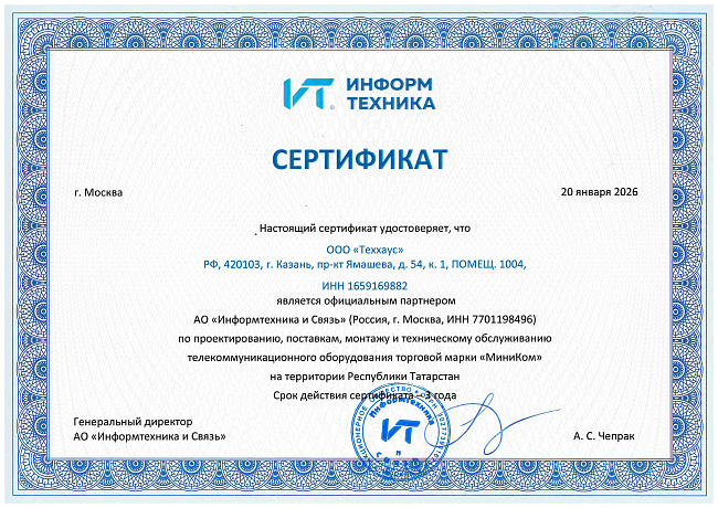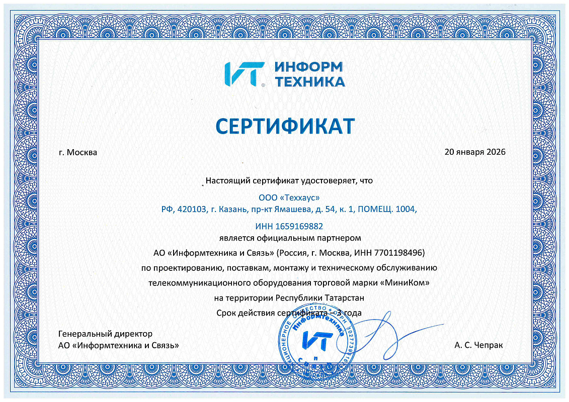 Сертификат АО"Информтехника и Связь"